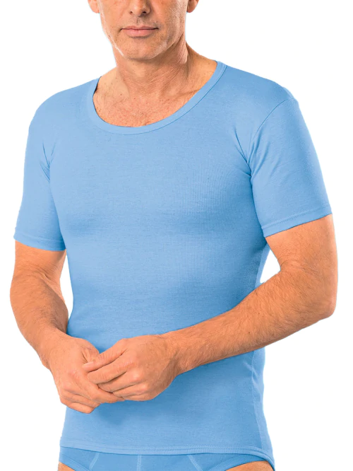 Sada 2 tričiek s krátkym rukávom s okrúhlym výstrihom a vysokým chrbtom v rovnakej veľkosti a farbe. Pohodlný klasický model bez bočných švov, vysoký chrbát, výstrih ukončený lemom. Spodná časť s dvojitým prešitím. Dlhý strih (cca 72 cm), priliehajúci k telu. Čistá, česaná, vrúbkovaná bavlna. Možno prať v práčke na 40 ° C.