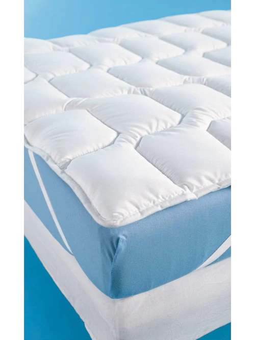 Poťah na matrac z mikrovlákna Top Cool, ktorý odvádza vlhkosť a umožňuje voľné prúdenie vzduchu, naplnený silikónovými vláknami a polyesterom. 400 g / m². Možno prať v práčke na 60 ° C.