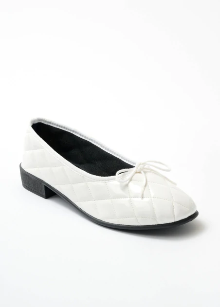 Balerínky s elegantným prešívaním. Zvršok je vyrobený zo syntetického materiálu, ozdobený lemom a mašličkou. Podšívka z čistej bavlny a vložka z polyesterovej látky. Protišmyková podrážka z elastoméru. Hranatý podpätok cca 2 cm. Vyrobené vo Francúzsku.