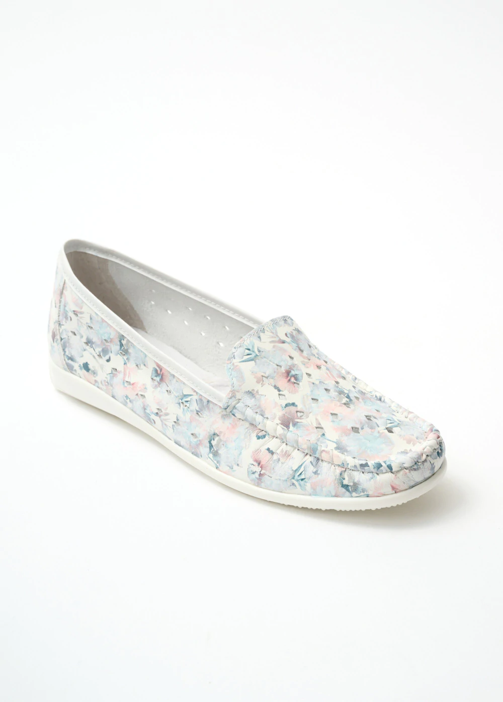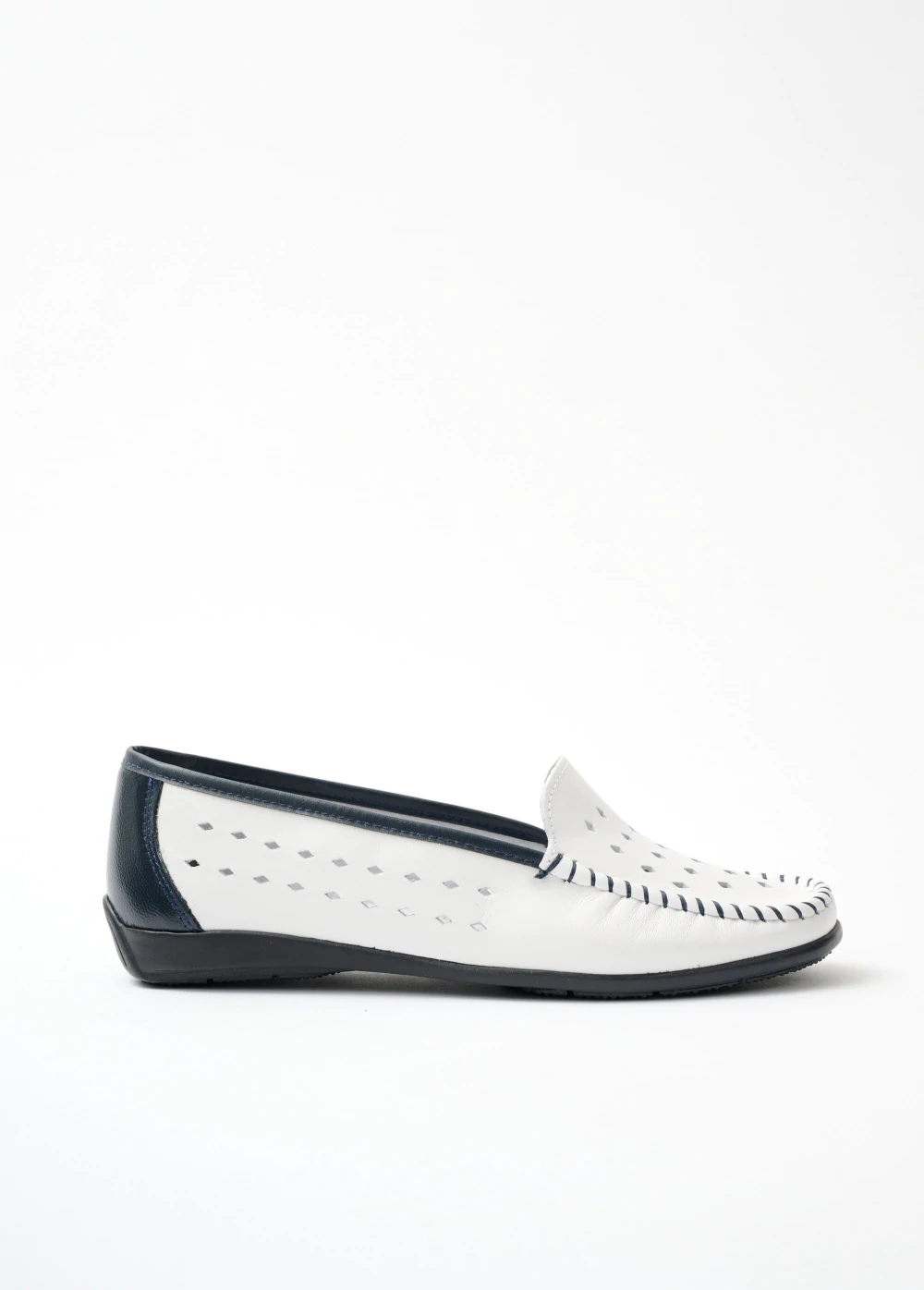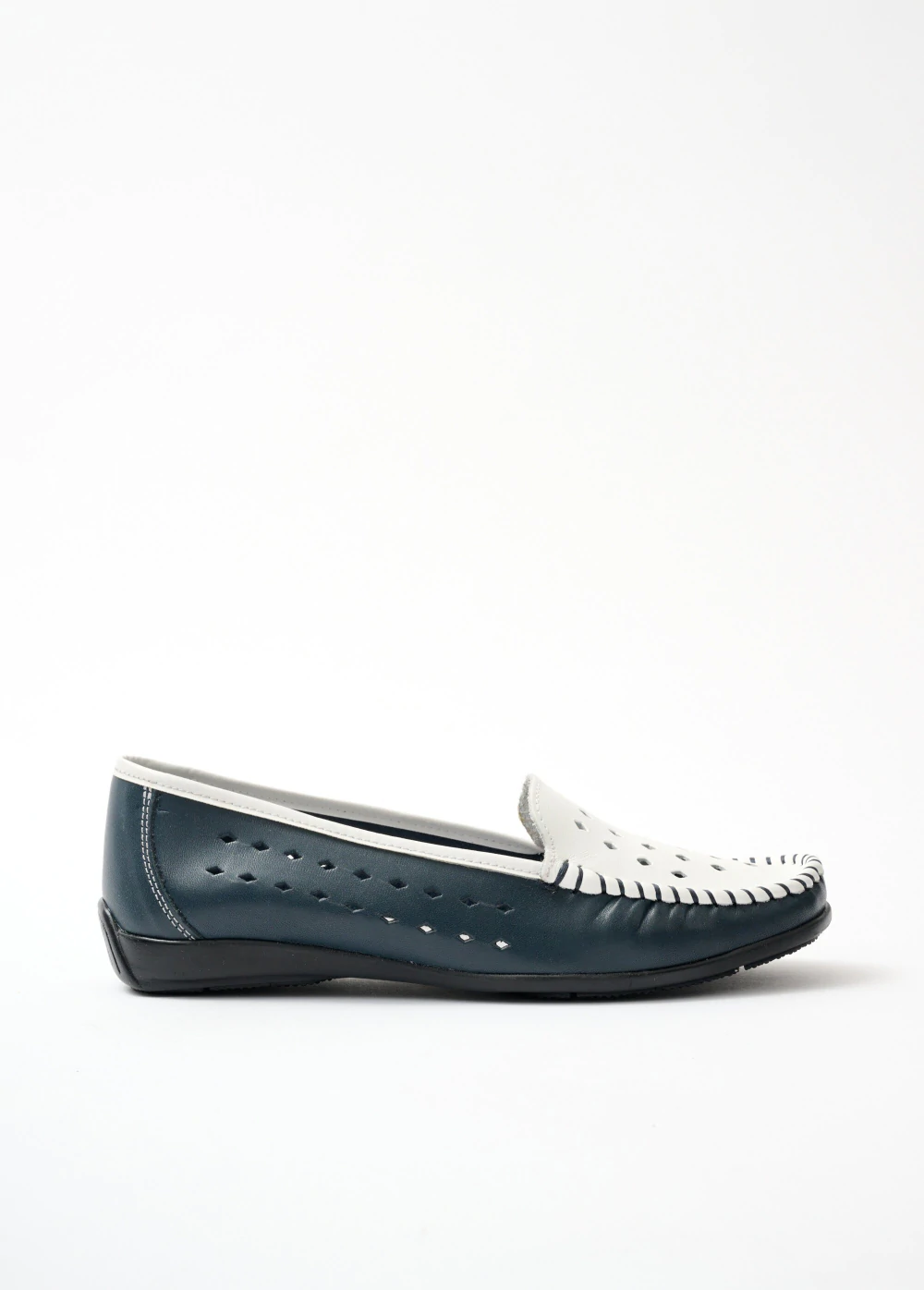 Krásne dierkované mokasíny, ktoré kombinujú dve jemné farby. Klinový podpätok cca 1,5 cm. Zvršok z hovädzej kože. Kožená stielka. Pružná a protišmyková elastomérová podrážka.