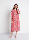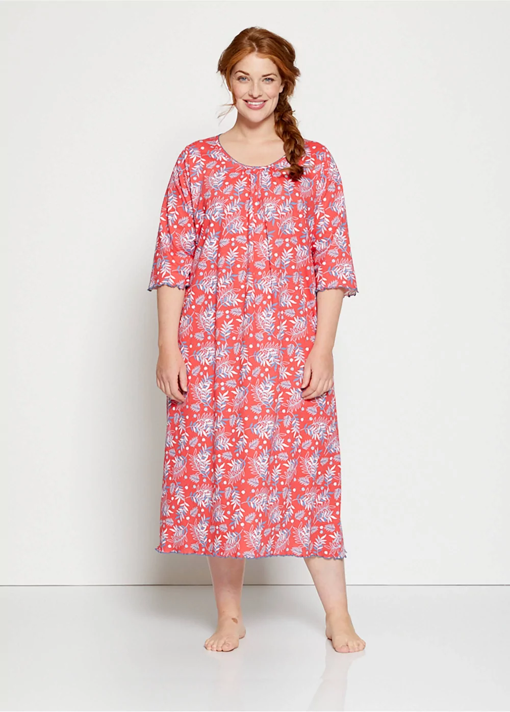 Nočná košeľa - synonymum pohodlia a ženskosti. Okrúhly výstrih s volánmi ozdobený háčkovaným lemom. 3/4 rukávy a lem ukončené rolovaným stehom. Dĺžka cca 120 cm. Možno prať v práčke na 30 ° C. Džersej z čistej česanej bavlny.