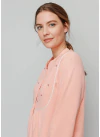 Hladká alebo vzorovaná nočná košeľa. Okrúhle jarmo s jemnou výšivkou a volánmi ozdobené saténovým lemovaním. Dlhá klopa na gombíky ukončená pohodlným stojačikom. Dĺžka cca 120 cm. Možno prať v práčke na 30 ° C. Interlock 50% česaná bavlna, 50% polyester.