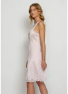 Spodnička je k dispozícii v 2 farbách, z ktorých si môžete vyberať v závislosti od farby spodnej bielizne, priliehavý strih. Zvislé, zoštíhľujúce strihy, spodná časť a výstrih z očarujúcej čipky. Zadná časť výstrihu a podpazušia lemovaná krajkou Valencienne. Odolná, antistatická, saténová polyamidová látka. Dĺžka cca 90 cm. Možno prať v práčke na 40 ° C.