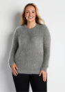Pletený sveter s dlhým vlasom. Okrúhly výstrih, dlhé rukávy, okraje zakončené rebrovaným lemom. Dĺžka cca 62 cm. Možno prať v práčke na 30 ° C. Materiál 54% akryl, 46% polyamid.