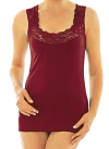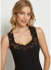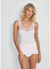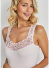 Sada 2 tričiek bez rukávov, ženských a pohodlných, jednej veľkosti a farby z čistej rebrovanej česanej bavlny. Elastická čipka, podpazušie a výstrih vzadu ozdobené elastickým, saténovým lemovaním (model VAIRE). Bez bočných švov. Dĺžka od 66 do 75 cm. Možno prať v práčke na 40 ° C.