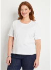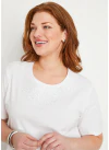Ženské, pohodlné a nápadité tričko s krátkym rukávom v krásnej škále módnych farieb. Okrúhly výstrih zdobený saténovou výšivkou rovnakej farby a kamienkami. Dĺžka cca 62 cm. Možno prať v práčke na 30 ° C na ľavej strane. Ďzersej z čistej česanej bavlny.
